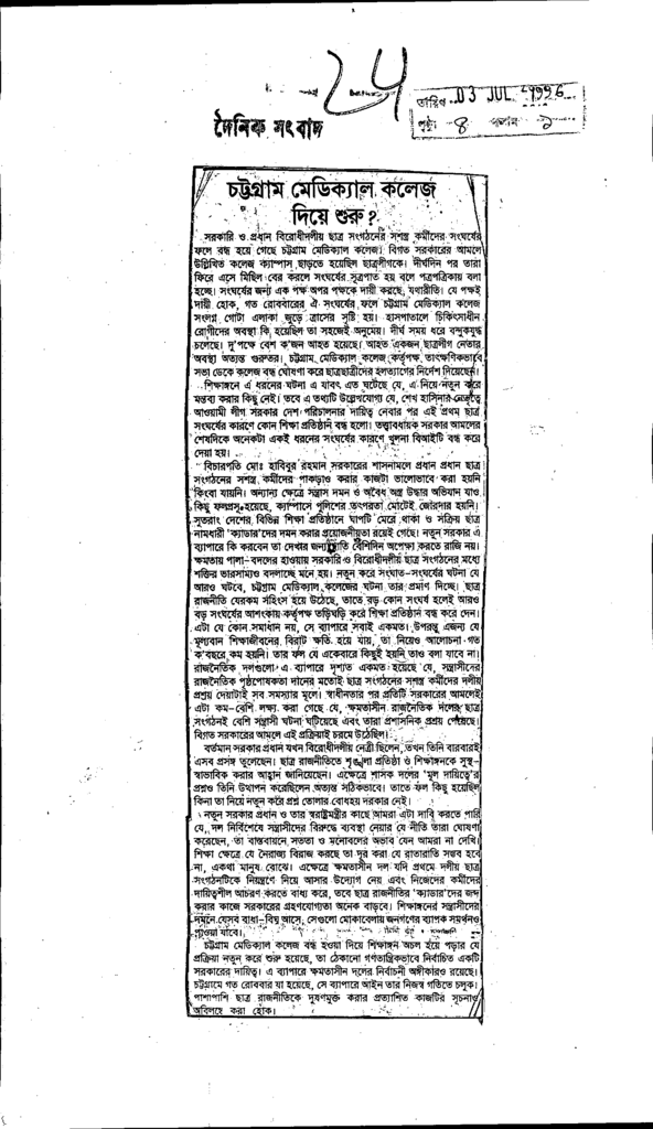 চট্টগ্রাম মেডিক্যাল কলেজ দিয়ে শুরু? Published on Newspaper দৈনিক সংবাদ Category Madrasah Education Madrasah Education Alia Download