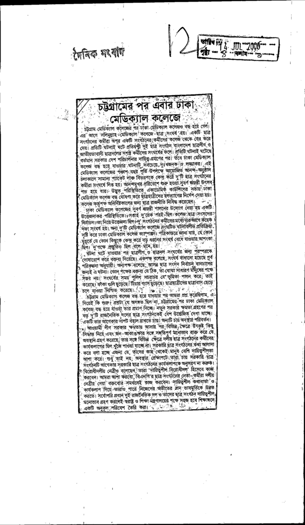 চট্টগ্রামের পর এবার ঢাকা মেডিক্যাল কলেজে