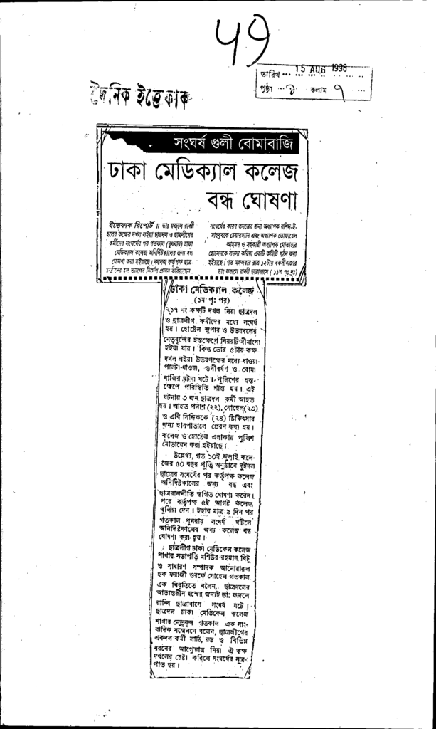ঢাকা মেডিক্যাল কলেজ বন্ধ ঘোষণা Published on Newspaper দৈনিক ইত্তেফাক Category Madrasah Education Madrasah Education Alia Download