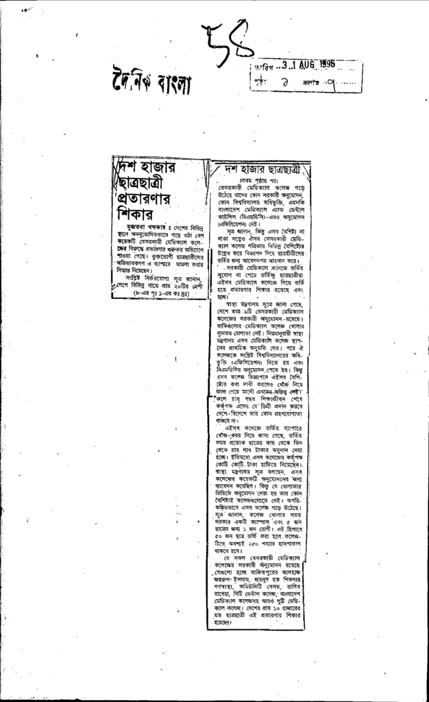 দশ হাজার ছাত্রছাত্রী প্রতারণার শিকার Published on Newspaper দৈনিক বাংলা Category Madrasah Education Madrasah Education Alia Download