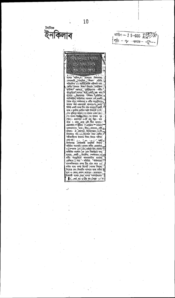 ধর্মীয় অনুভুতিতে আঘাত হেনে আবার ইসলাম শিক্ষা বিষয়ে পশ্নপত্র