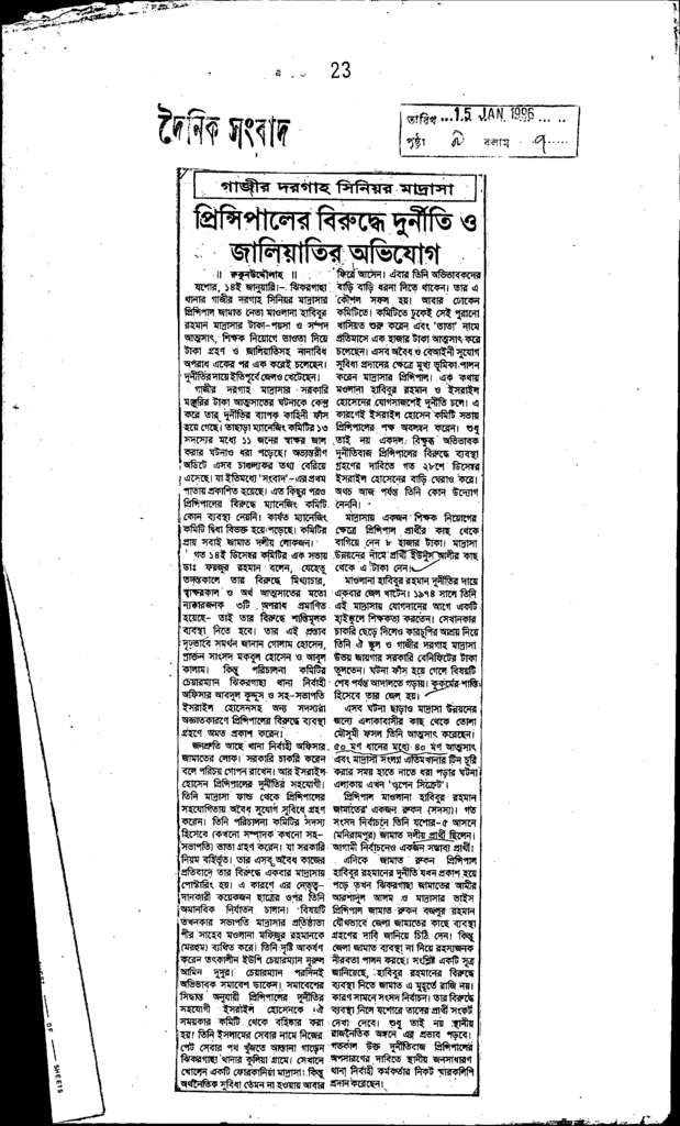 প্রিন্সিপালেল বিরুদ্ধে দুর্নীতি ও জালিয়াতির অভিযোগ Published on Newspaper দৈনিক সংবাদ Category Madrasah Education Madrasah Education Alia Download