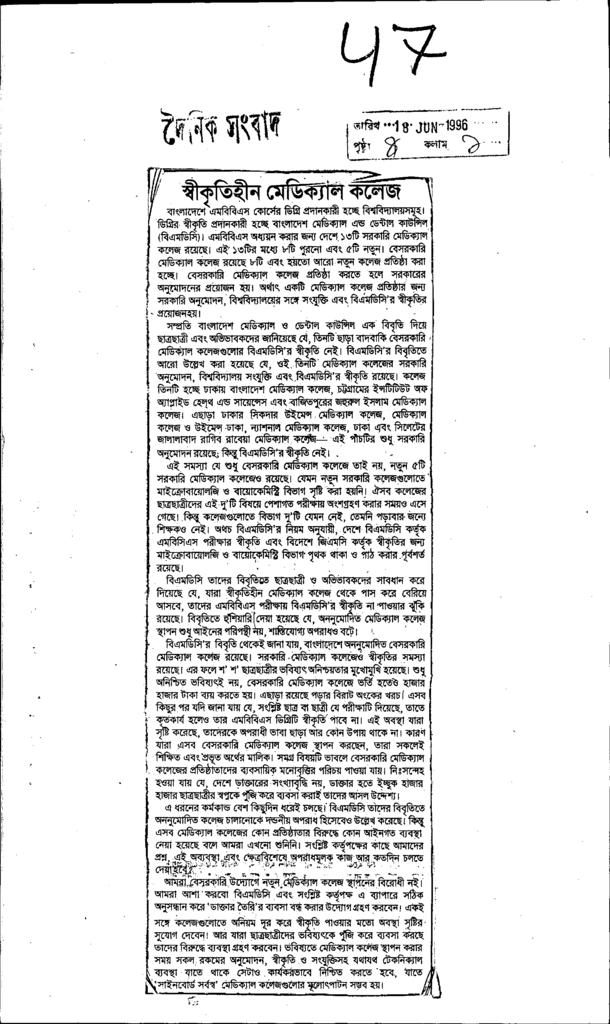 স্বীকৃতিহীন মেডিক্যার কলেজ Published on Newspaper দৈনিক সংবাদ Category Madrasah Education Madrasah Education Alia Download