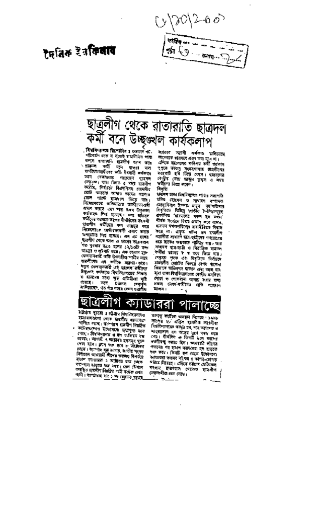 ছাত্রলীগ থেকে রাতারাতি ছাত্রদল কর্মী বনে উচ্ছৃঙ্খল কার্যকলাপ