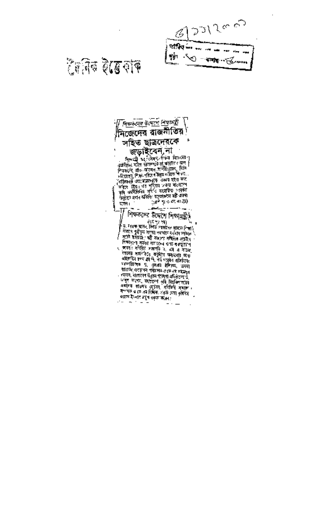 শিক্ষকদের উদ্দেশে শিক্ষামন্ত্রীঃ নিজেদের রাজনীতি সহিত ছাত্রদেরকে জড়াইবেন না Published on Newspaper দৈনিক ইত্তেফাক Category Student Politics Download