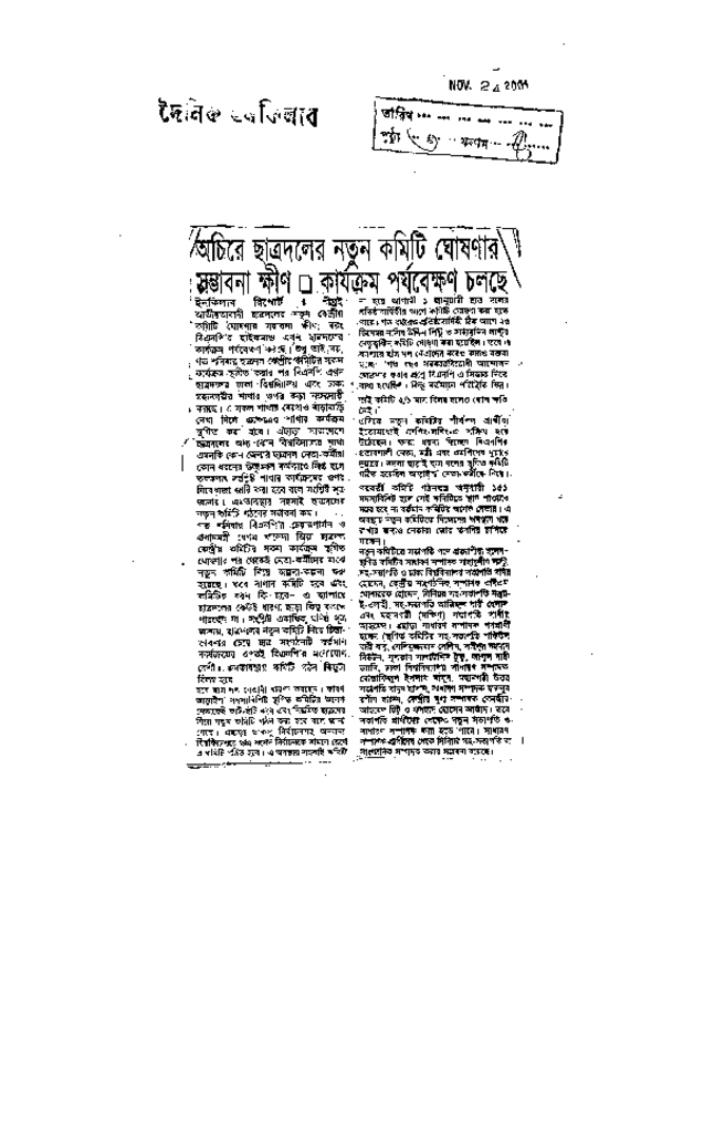 অচিরে ছাত্রদলের নতুন কমিটি ঘোষণার সম্ভাবনা ক্ষীন, কার্যক্রম পর্যবেক্ষণ চলছে Published on Newspaper দৈনিক ইনকিলাব Category Student Politics Download