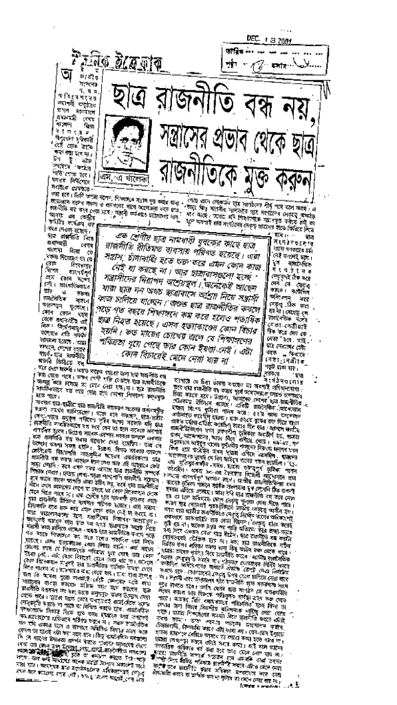 ছাত্র রাজনীতি বন্ধ নয়, সন্ত্রাসের প্রভাব থেকে ছাত্র রাজনীতিকে মুক্ত করুন