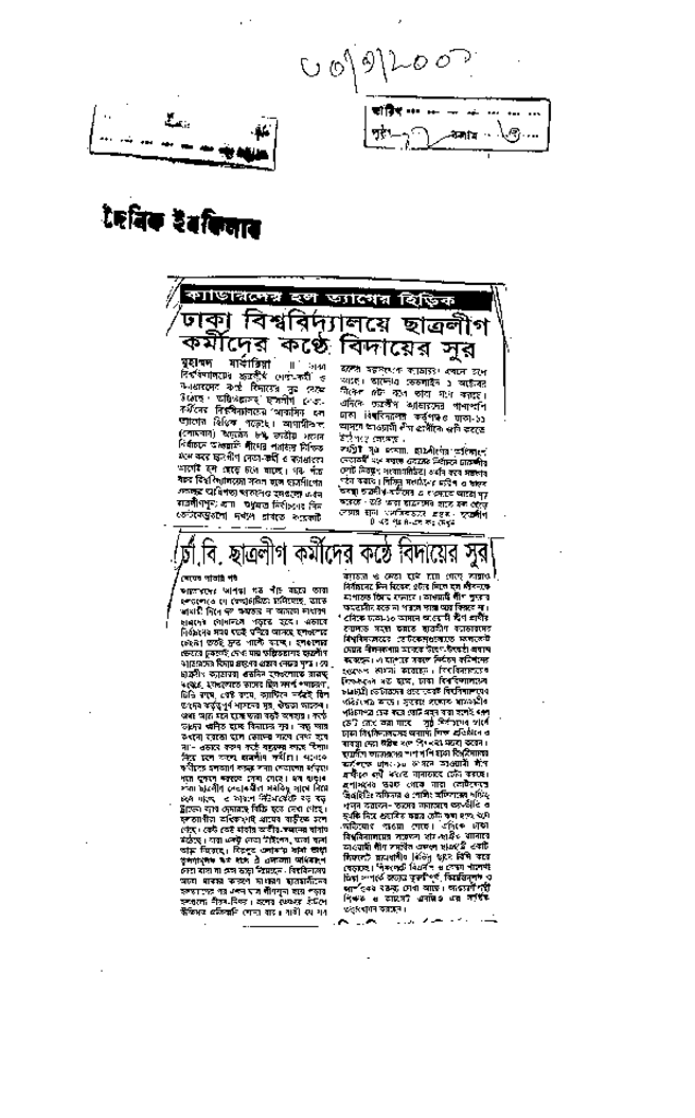 ঢাবি ছাত্রলীগ কর্মীদের কন্ঠে বিদায়ের সুর Published on Newspaper দৈনিক ইনকিলাব Category Student Politics Download