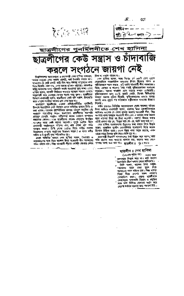 ছাত্রলীগের কেউ সন্ত্রাস ও চাঁদাবাজি করলে সংগঠনে জায়গা নেই Published on Newspaper দৈনিক সংবাদ Category Student Politics Download