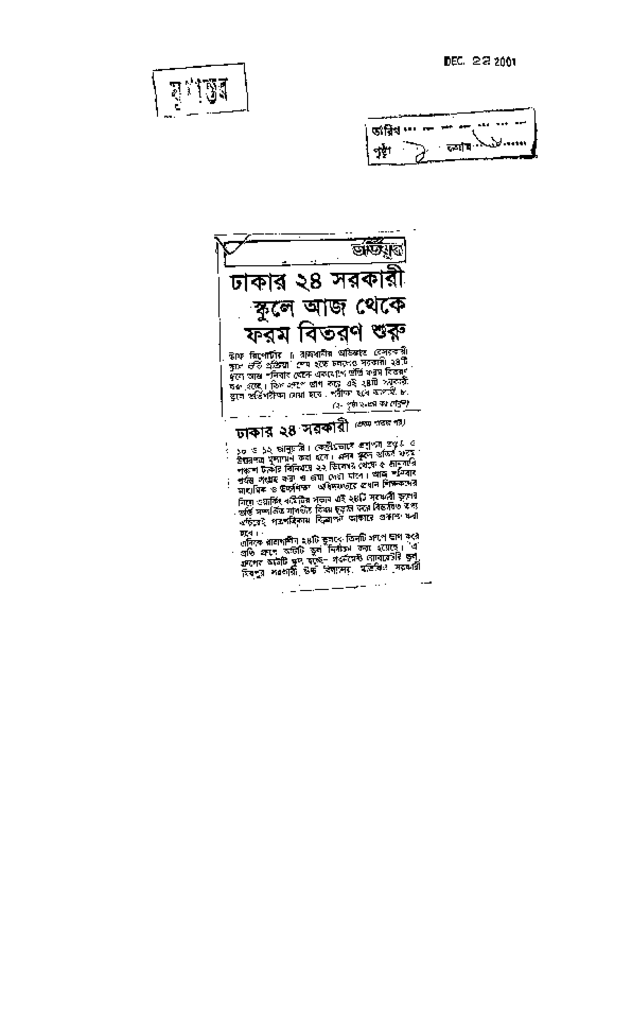 ঢাকার ২৪ টি সরকারী স্কুলে আজ থেকে ফরম বিতরণ শুরু Published on Newspaper দৈনিক যুগান্তর Category General Education General Education Download