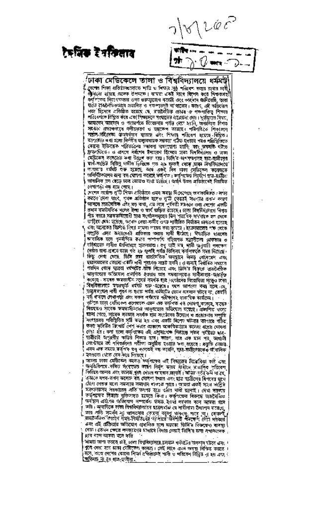 ঢাকা মেডিকেলে তালা ও বিশ্ববিদ্যালয়ে ধর্মঘট Published on Newspaper দৈনিক ইনকিলাব Category Student Politics Download