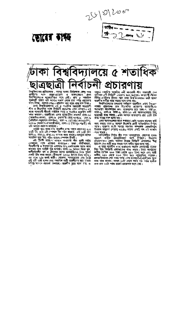 ঢাকা বিশ্ববিদ্যালয়ে ৫ শতাধিক ছাত্রছাত্রী নির্বাচনী প্রচারণায় Published on Newspaper দৈনিক ভোরের কাগজ Category Student Politics Download