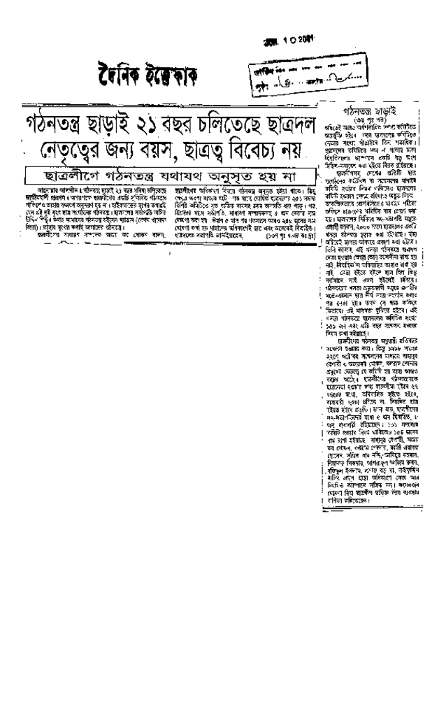গঠনতন্ত্র ছাড়াই ২১ বছর চলিতেছে ছাত্রদল নেতেৃত্বের জন্য বয়স, ছাত্রত্ব বিবেচ্য নয় Published on Newspaper দৈনিক ইত্তেফাক Category Student Politics Download