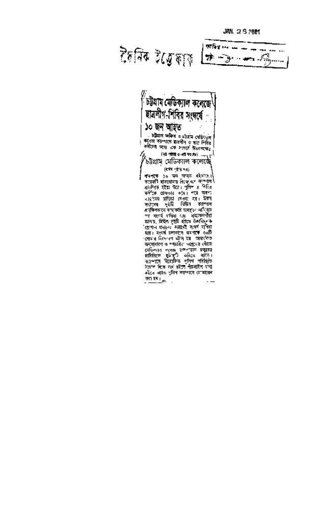 চট্রগ্রাম মেডিক্যাল কলেজে ছাত্রলীগ-শিবির সংঘর্ষ ১০ জন আহত Published on Newspaper দৈনিক ইত্তেফাক Category Campus Terrorism Download