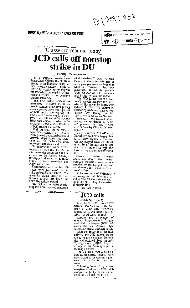 JCD calls off nonstop strike in DU