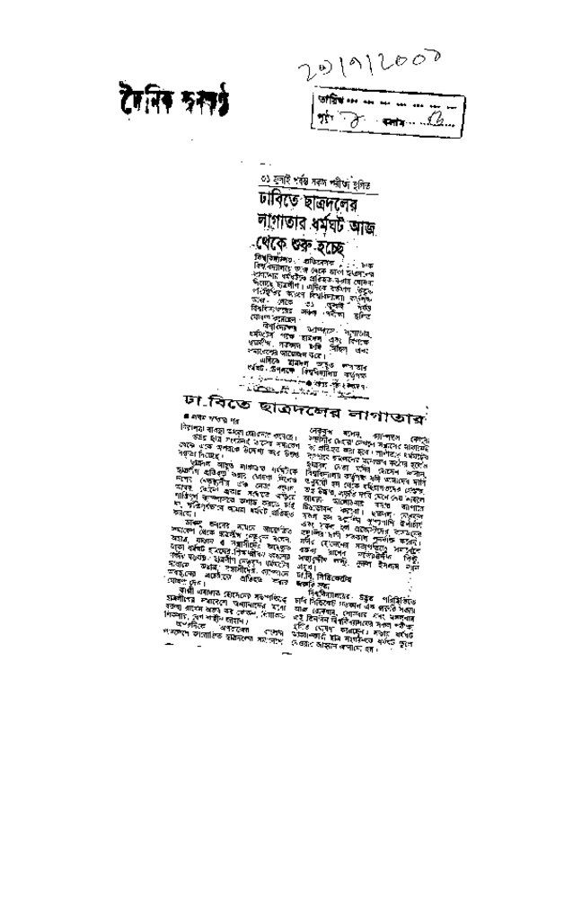 ঢাবিতে ছাত্রদলের লাগাতার ধর্মঘট আজ থেকে শুরু হচ্ছে Published on Newspaper দৈনিক জনকণ্ঠ Category Student Politics Download