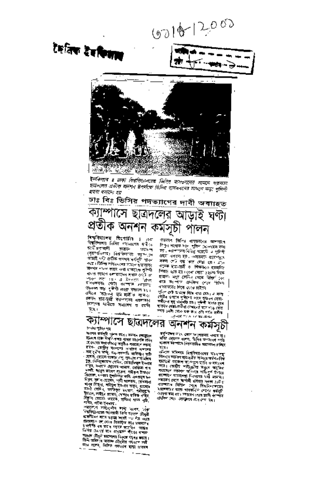 ক্যাম্পাসে ছাত্রদলের আড়াই ঘন্টা প্রতীক অনশন কর্মসূচি পালন