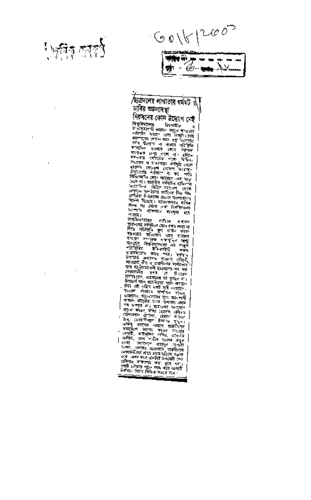 ছাত্রদলের লাগাতার ধর্মঘট