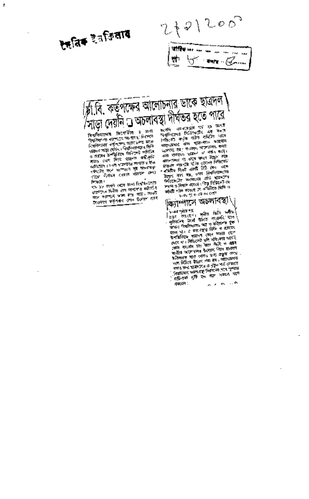 ঢা.বি কর্তৃপক্ষের আলোচনার ডাকে ছাত্রদল সাড়া দেয়নি Published on Newspaper দৈনিক ইনকিলাব Category Student Politics Download