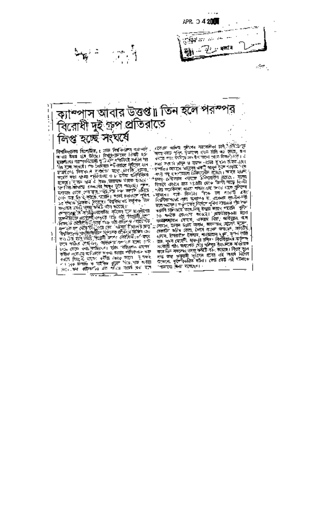 ক্যাম্পাস আবার উত্তপ্ত // তিন হলে পরস্পর বিরোধী দুই গ্রুপ গ্রতিরাতে লিপ্ত হচ্ছে সংঘর্ষে Published on Newspaper দৈনিক জনকণ্ঠ Category Campus Terrorism Download