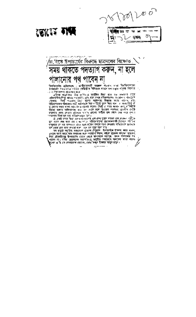সময় থাকতে পদত্যাগ করুন, না হলে পালানোর পথ পাবেন না Published on Newspaper দৈনিক ভোরের কাগজ Category Student Politics Download