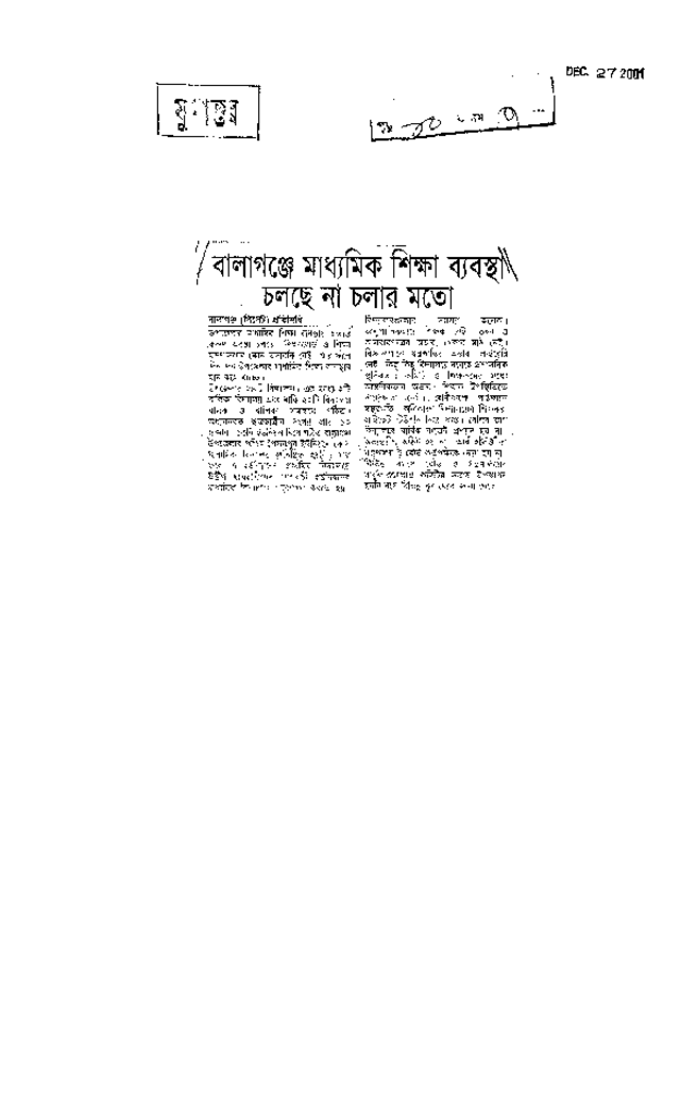 বালাগঞ্জে মাধ্যমিক শিক্ষা ব্যবস্থা চলছে না চলার মতো Published on Newspaper দৈনিক যুগান্তর Category General Education General Education Download