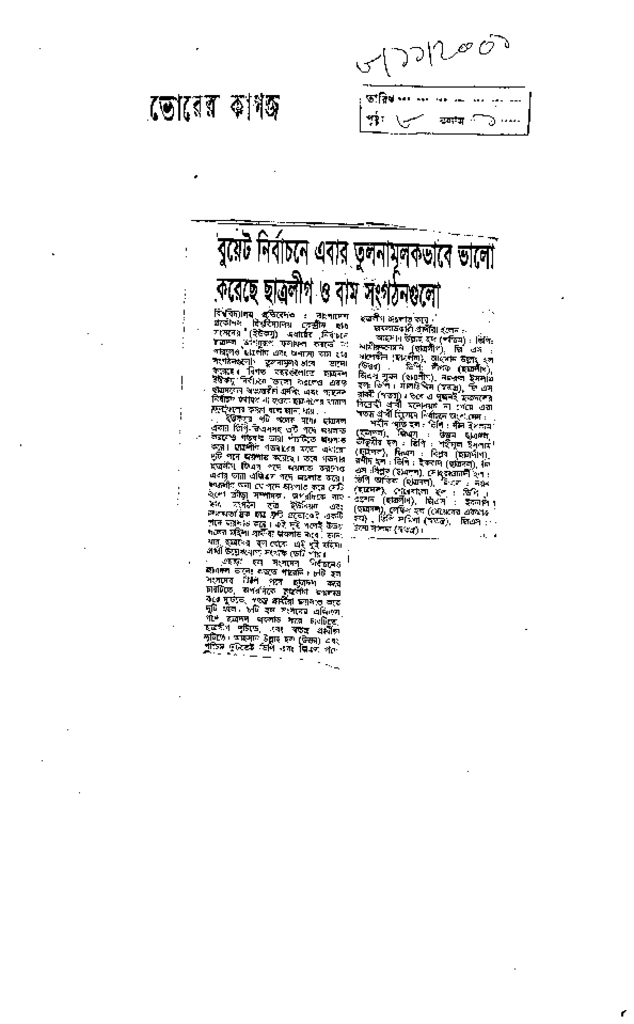 বুয়েট নির্বাচনে এবার তুলনামূলকভাবে ভালো করেছে ছাত্রলীগ ও বাম সংগঠনগুলো Published on Newspaper দৈনিক ভোরের কাগজ Category Student Politics Download