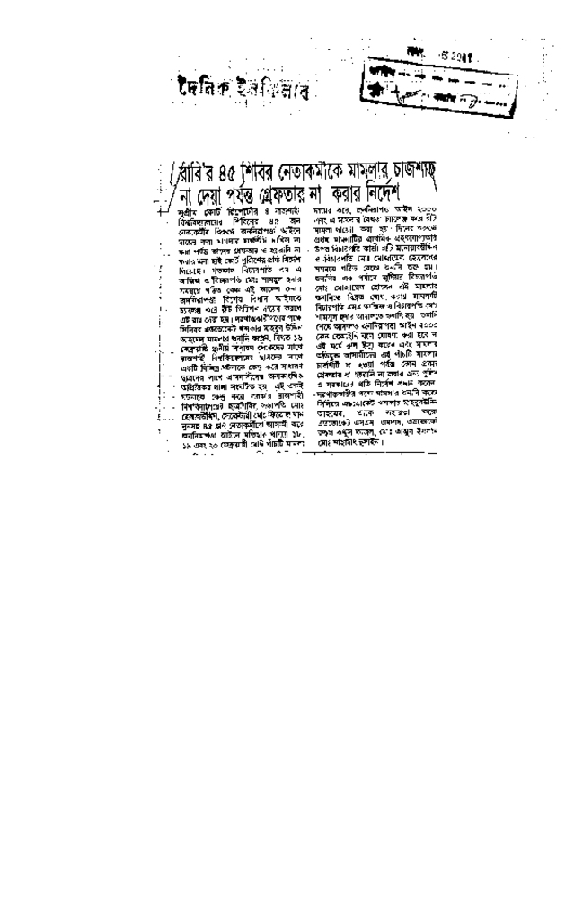 রাবি’র ৪৫ শিবিরি নেতাকর্মীকে মামলার চার্জশী না দেয়া পর্যন্ত গ্রেফতার না করার নির্দেশ Published on Newspaper দৈনিক ইনকিলাব Category Student Politics Download