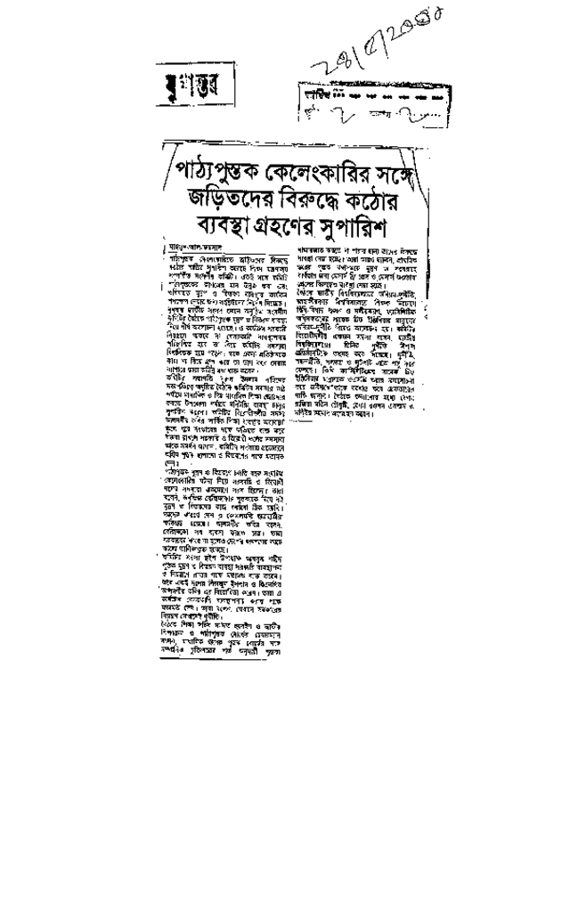 পাঠ্যপুস্তক কেলেংকারির সঙ্গে জড়িতদের বিরুদ্ধে কঠোর ব্যবস্থা গ্রহণের সুপারিশ Published on Newspaper দৈনিক যুগান্তর Category Personal Opinion / Discussion / Commentary Download