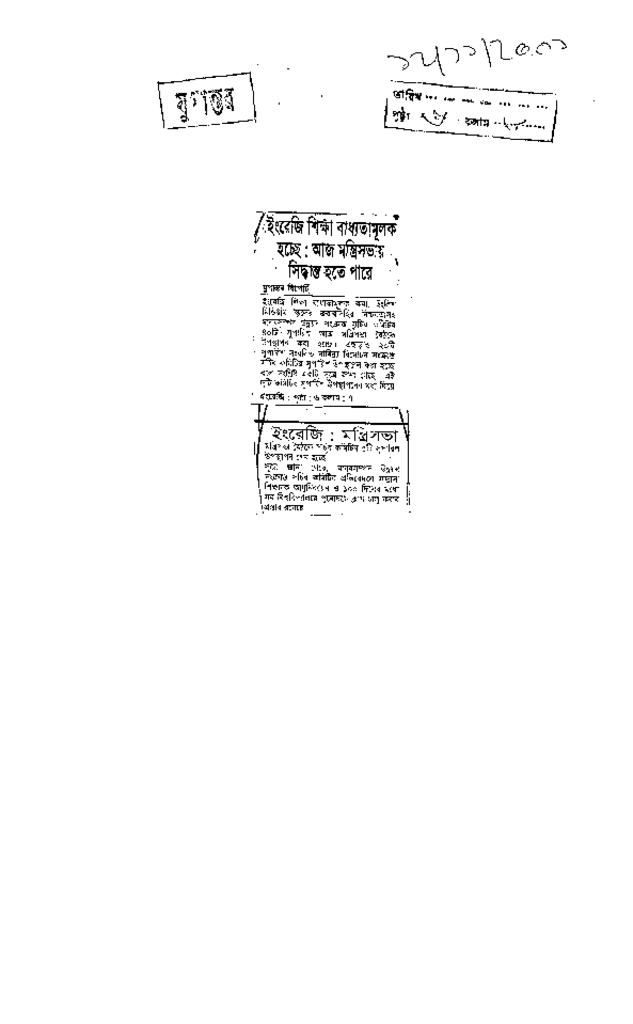ইংরেজি শিক্ষা বাধ্যতামূলক হচ্ছে : আজ মন্ত্রিসভায় সিদ্ধান্ত হতে পারে Published on Newspaper দৈনিক যুগান্তর Category Education Policy / Education Commission Download