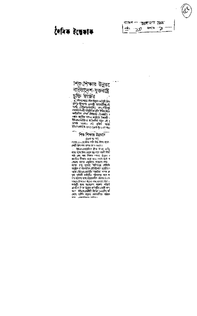 শিশু শিক্ষার উন্নয়নে বাংলাদেশ-যুক্তরাষ্ট্র চুক্তি স্বাক্ষর Published on Newspaper দৈনিক ইত্তেফাক Category Child Education Download