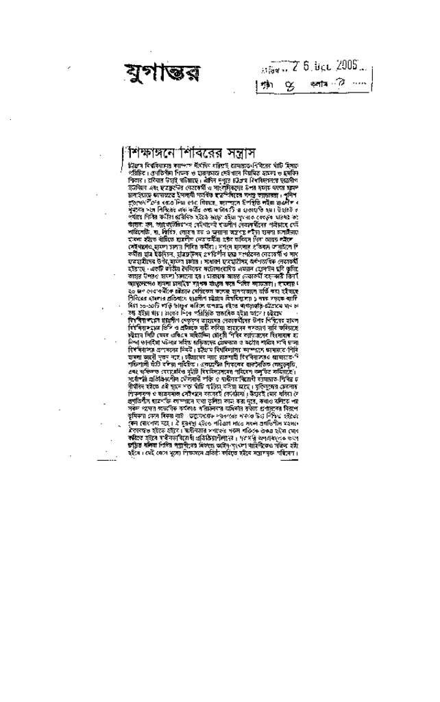 শিক্ষাঙ্গনে শিবিরের সন্ত্রাস Published on Newspaper দৈনিক যুগান্তর Category Campus Terrorism Download