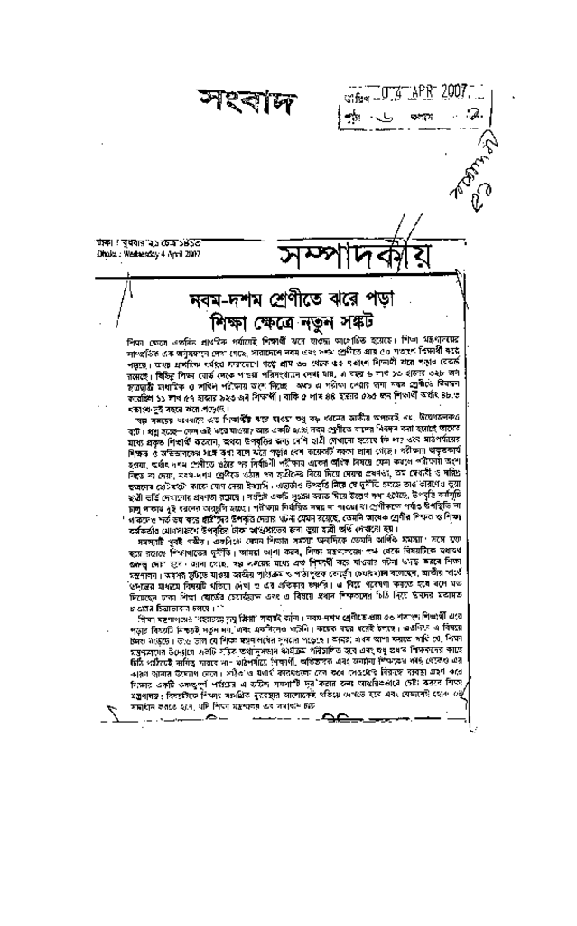 সম্পাদকীয়ঃ নবম-দশম শ্রেণীতে ঝরে পড়া শিক্ষা ক্ষেত্রে নতুন সঙ্কট Published on Newspaper দৈনিক সংবাদ Category Personal Opinion / Discussion / Commentary Personal Speech / Discussion / Comentary Secondary and Higher Secondary Education Download