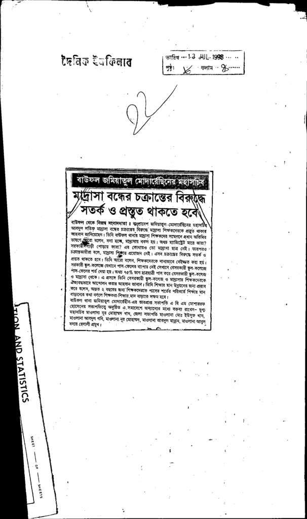মাদ্রাসা বন্ধের চক্রান্তের বিরুদ্ধে সতর্ক ও প্রস্তুত থাকতে হবে Published on Newspaper দৈনিক ইনকিলাব Category Madrasah Education Madrasah Education Alia Download