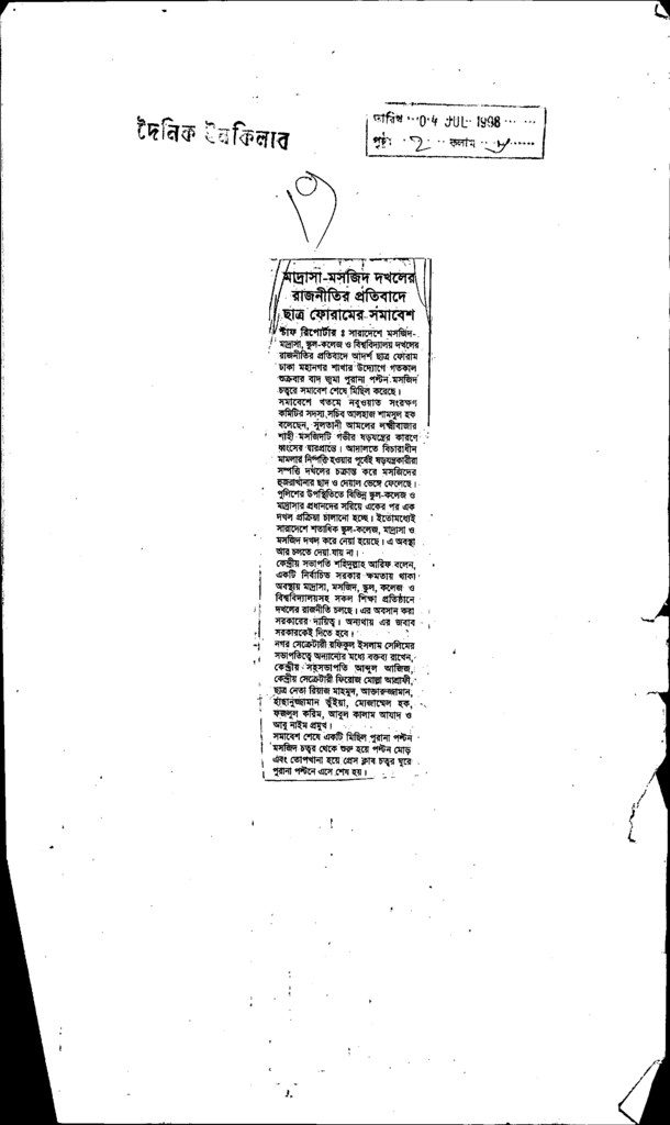 মাদ্রাসা- মসজিদ দখলের রাজনীতির প্রতিবাদের ছাত্র ফোরামের সমাবেশ Published on Newspaper দৈনিক ইনকিলাব Category Madrasah Education Madrasah Education Alia Download