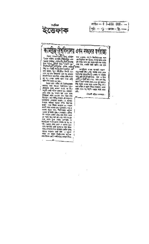 ক্যামব্রিজ বিশ্ববিদ্যালয় এখন নকলের স্বর্গরাজ্য Published on Newspaper দৈনিক ইত্তেফাক Category Campus Terrorism Download