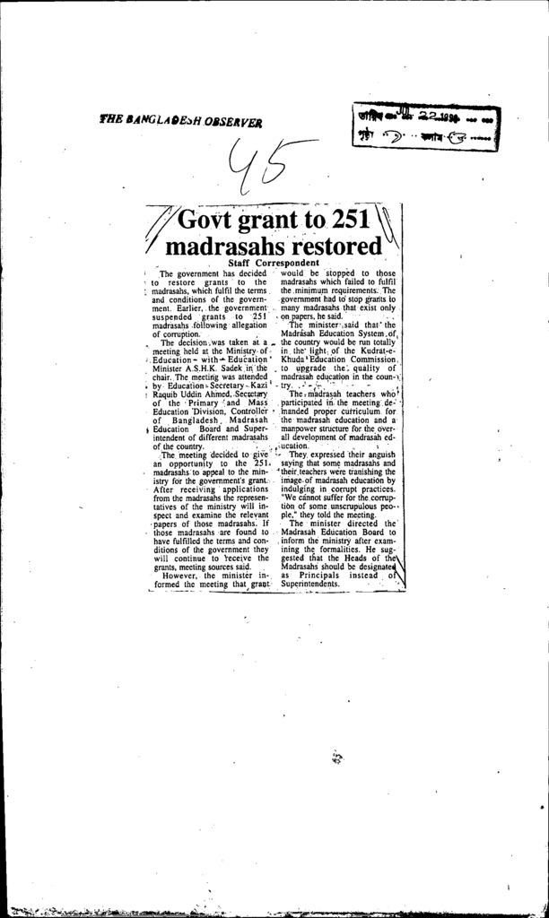 Govt grant to 251 madrasahs restored Published on Newspaper The Bangladesh Observer Category Madrasah Education Madrasah Education Alia Download
