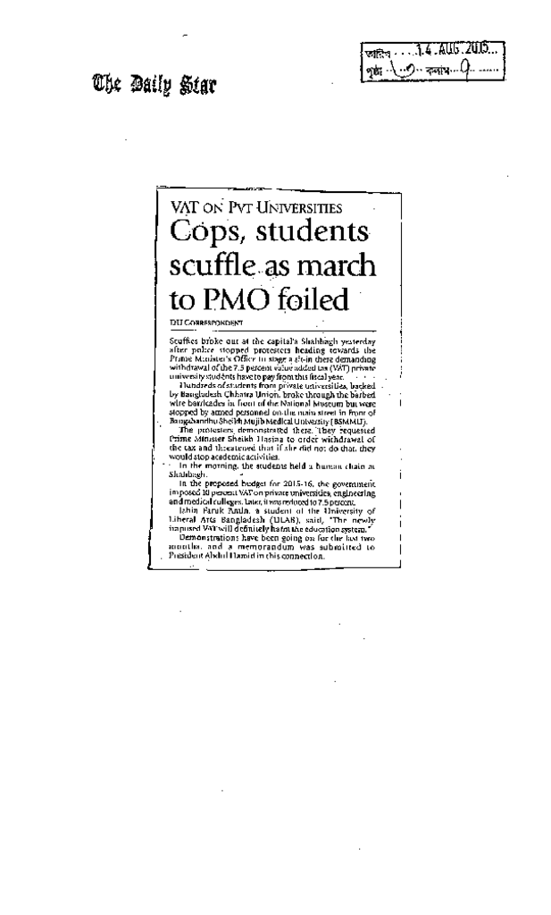 VAT on pvt Universities| Cops, students scuffle as march to PMO foiled Published on Newspaper The Daily Star Category General Education General Education Higher Education Private Download