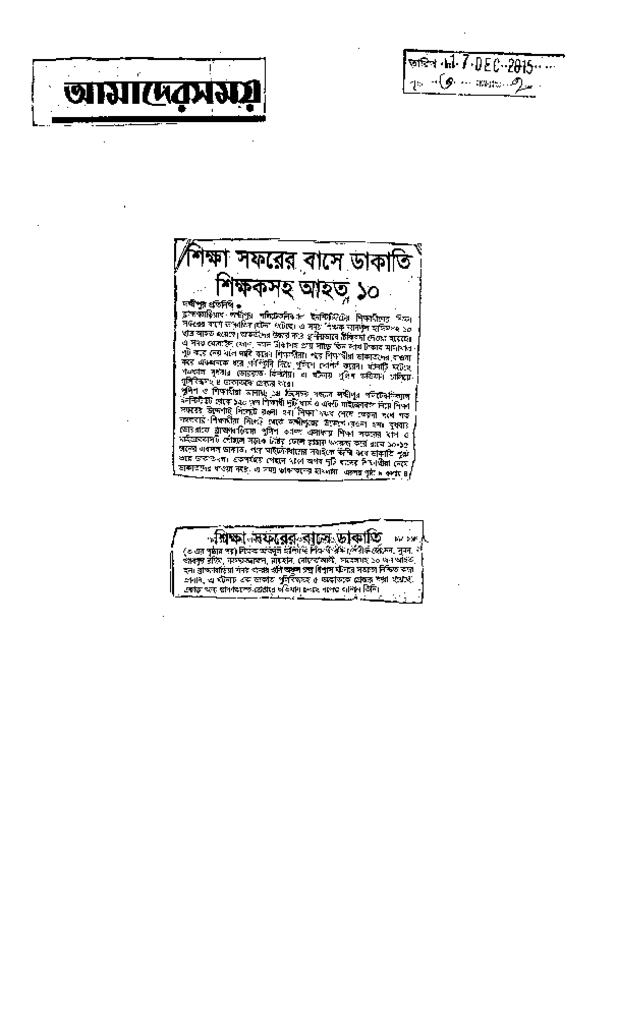 শিক্ষা সফরের বাসে ডাকাতি শিক্ষকসহ আহত ১০ Published on Newspaper দৈনিক আমাদের সময় Category Others Download