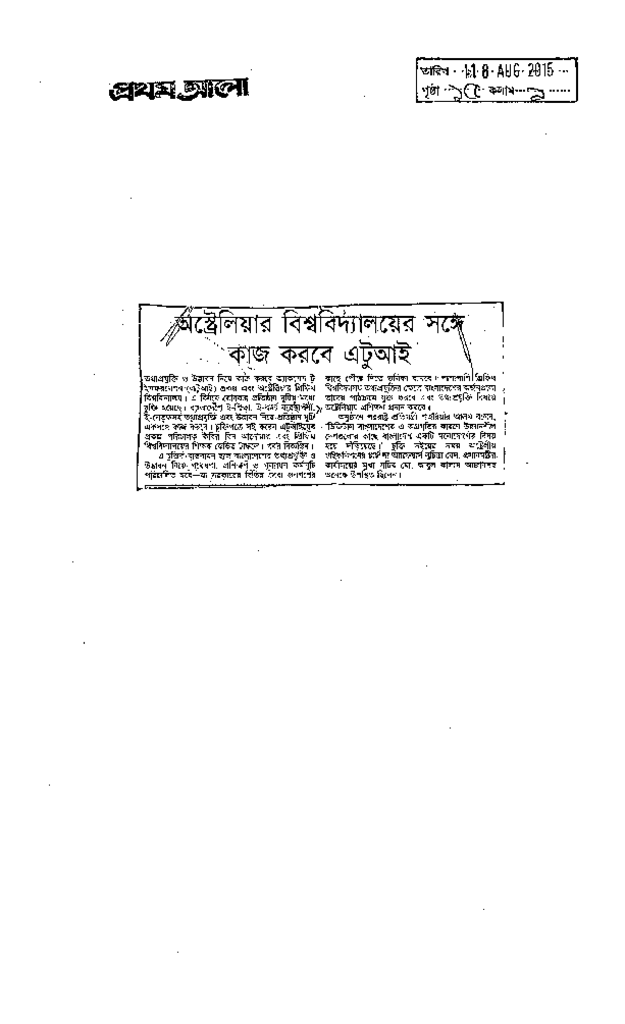 অস্ট্রেলিয়ার বিশ্ববিদ্যালয়ের সঙ্গে কাজ করবে এটুআই Published on Newspaper দৈনিক প্রথম আলো Category General Education General Education Higher Education Private Download