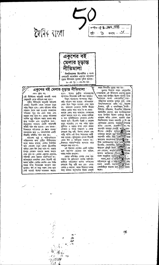 একুশের বই মেলার চূড়ান্ত নীতিমালা Published on Newspaper দৈনিক বাংলা Category General Education General Education Download