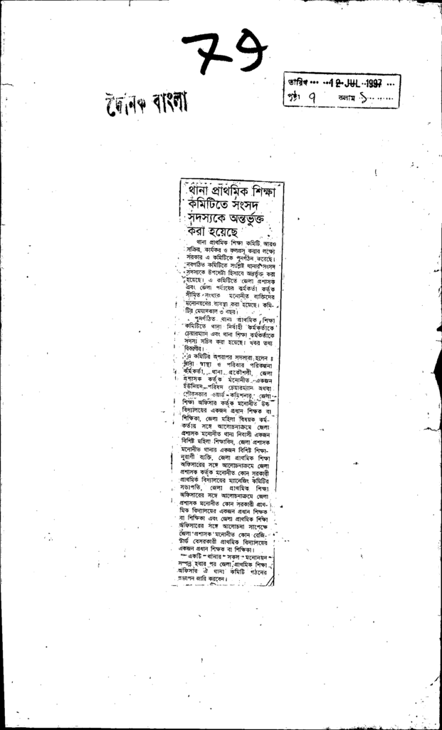 থানা প্রাথমিক শিক্ষা কমিটিতে সংসদ সদস্যকে অন্তর্ভুক্ত করা হয়েছে