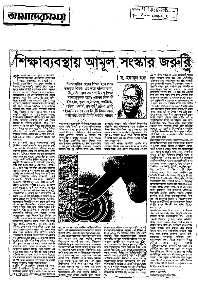 শিক্ষাব্যবস্হায় আমূল সংস্কার জরুরী