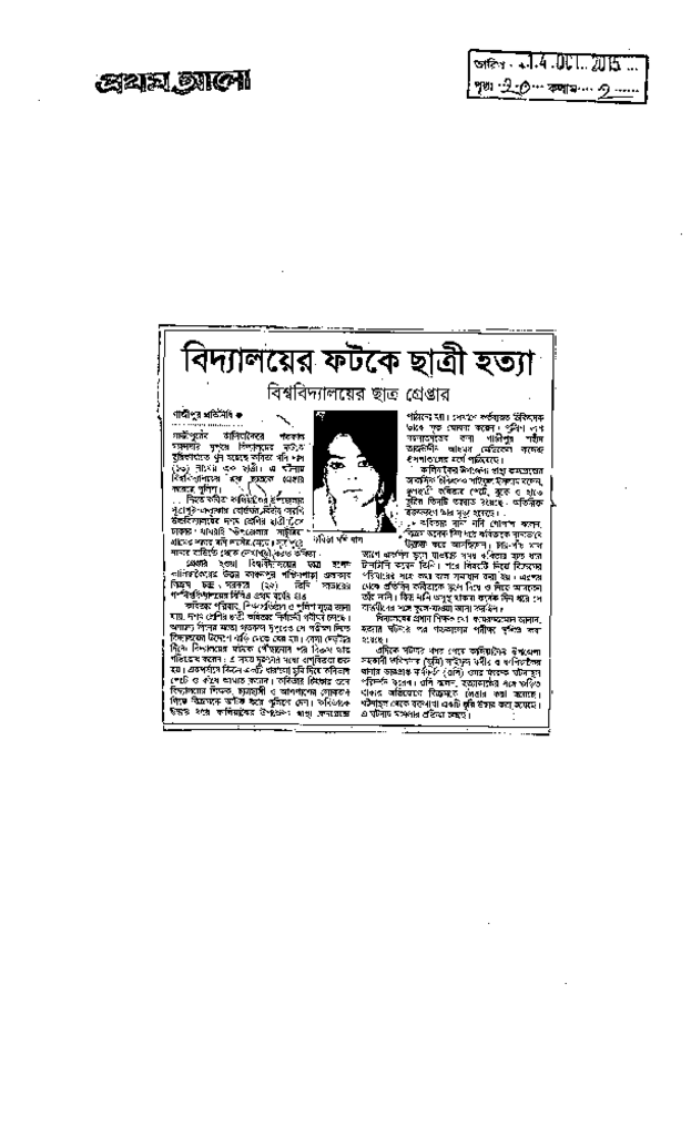 বিদ্যালয়ের ফটকে ছাত্রী হত্যা