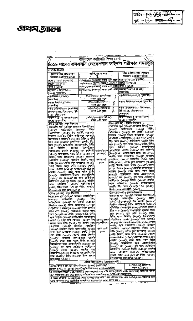 ২০১৬ সালের ভোকেশনাল ফাইনাল পরীক্ষার সময়সূচি নির্ধারণ Published on Newspaper দৈনিক প্রথম আলো Category Technical and Vocational Education Download