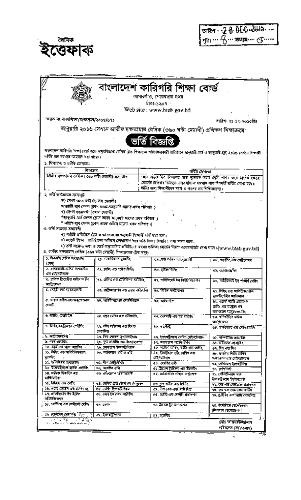 ভর্তি বিজ্ঞপ্তি Published on Newspaper দৈনিক ইত্তেফাক Category Technical and Vocational Education Download