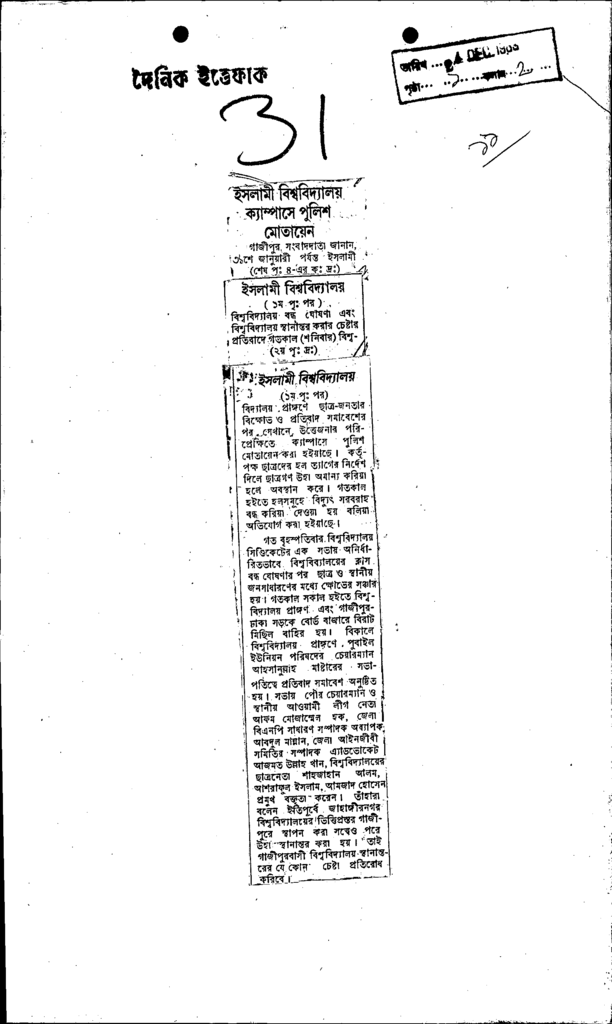 ইসলামী বিশ্ববিদ্যালয় ক্যাম্পাসে পুলিশ মোতায়েন Published on Newspaper দৈনিক ইত্তেফাক Category General Education General Education Higher Education Public Download