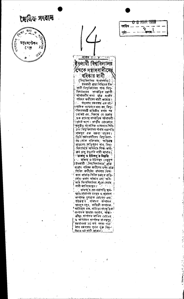 ইসলামী বিশ্ববিদ্যালয় থেকে সন্ত্রাসবাদীদের বহিষ্কার দাবী