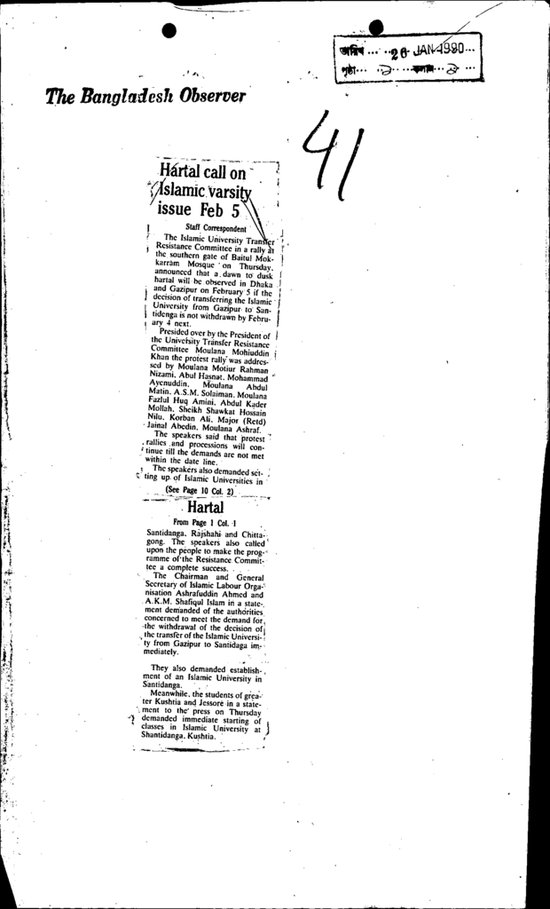 Hartal call on islamic varsity issue feb 5 Published on Newspaper The Bangladesh Observer Category General Education General Education Higher Education Public Download