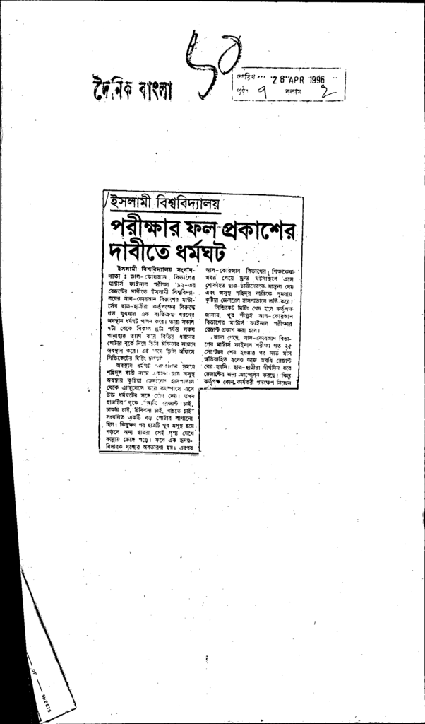 পরীক্ষার ফল প্রকাশের দাবীতে ধর্মঘট Published on Newspaper দৈনিক বাংলা Category General Education General Education Higher Education Public Download